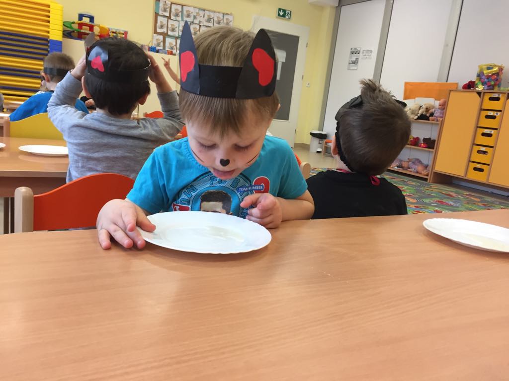Maluchy poznały podstawowe wiadomości oraz ciekawostki o domowym pupilu oraz mogły poczuć się jak prawdziwe kotki: była kocia gimnastyka, kocia charakteryzacja, oraz picie mleka ze spodeczka- taaaak wiemy, koty nie piją mleka, ale dla dzieci frajda była ogromna :)